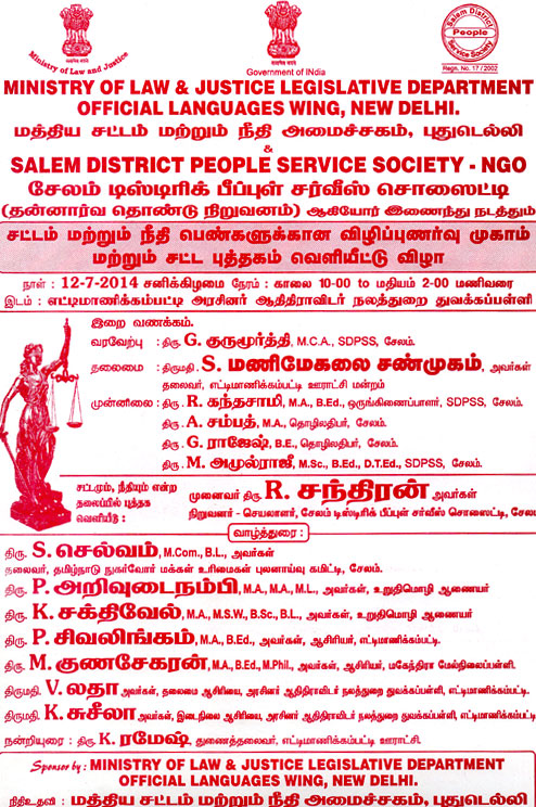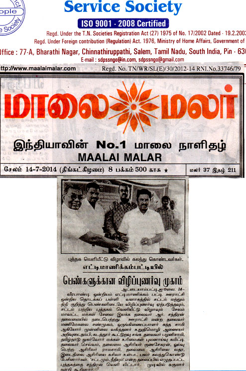 Warm greetings from Salem district people service society your goodwill and support enabled us, at Salem District people service society to cope with the Herculean task of lifting up hundreds of our fellow Human Beings from the clutches of Slavery ,Oppression, Poverty and Unemployment.We have been working for the Liberation and Education of Child Labourers; Rescuing and Re-Employing Migrant Workers, Organizing and Empowering Rural Women; Entrepreneurial Training to Youth and Sensitizing the General Public on issue of Human Rights, Health and Hygiene, Environment Protection.